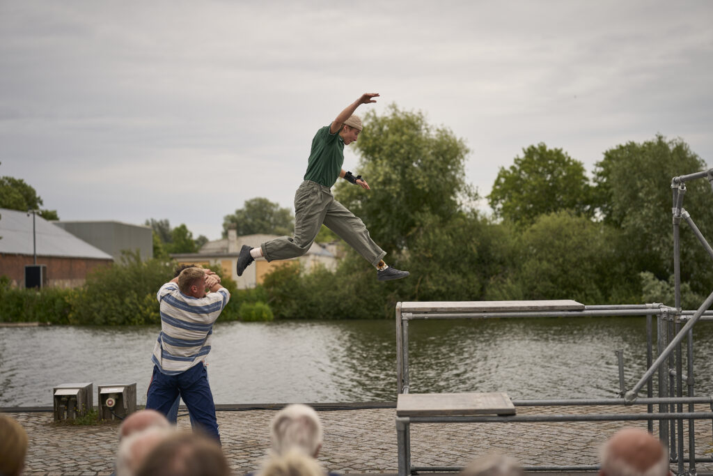 An outdoor parkour and circus performance by Simon Granit Ossoinak