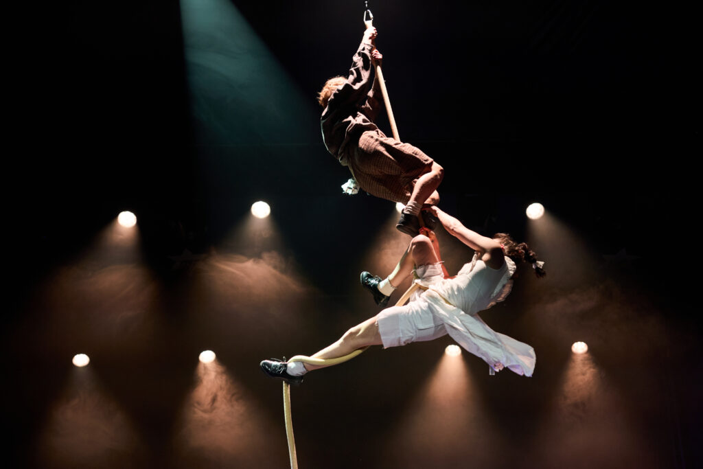 In the fantastic and strange circus performance The Marionette, you are a witness to the story of two peculiar characters, that unravel their relationship before your eyes. Through a creative and refreshing combination of aerial rope, partner- and floor-acrobatics, the intimate circus performance takes you on an unexpected journey, where the peculiars playfully follow their curiosities, discover their power dynamics, and test their own and each other’s boundaries.