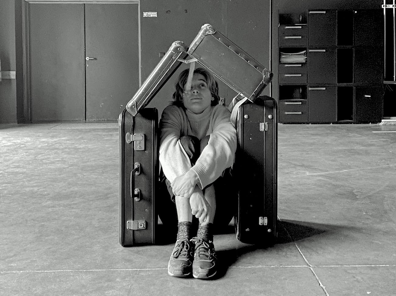In ‘Passing Through’, the character and their three suitcases take you on a journey, exploring the non-conventional pathways the body can, and sometimes has to take, to navigate itself through our world. Through floor-acrobatic movement and the theatricality of the body, this playful yet pressing circus performance comes to life. It’s a story about houses being torn down, natural disasters, borders, the displacement of people, and having to face the big world alone. As the character interacts with its surroundings – with a certain childlike imagination – the solo gently takes the audience on a journey, where it poetically reflects on our current society.